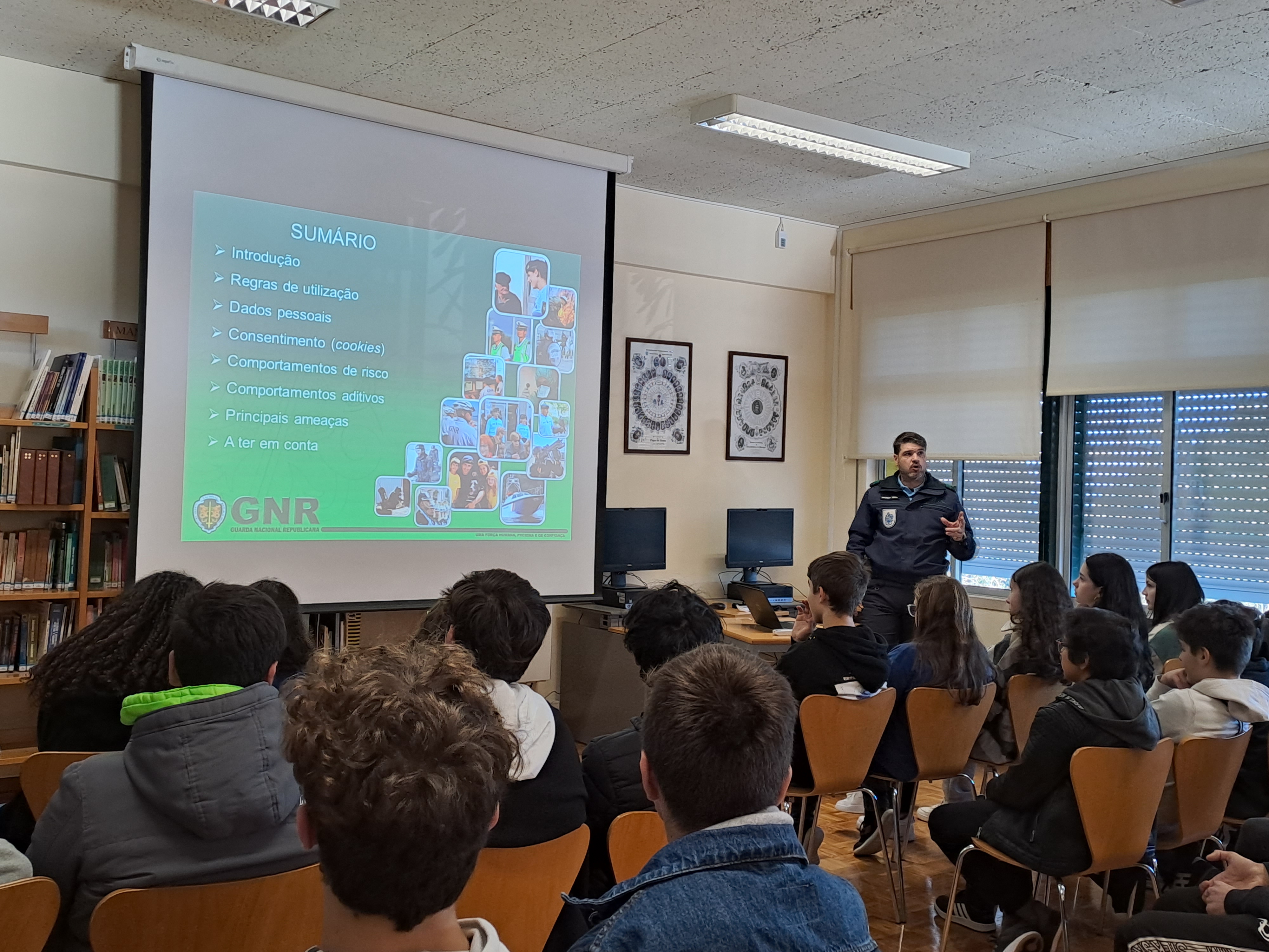 No dia 7 de fevereiro, Dia da Internet Mais Segura, a Escola Segura foi convidada a falar com os alunos do 8.º ano, sensibilizando-os para a adoção de comportamentos seguros e para a importância de alertar os amigos e familiares para os perigos da Internet, quando não a usamos convenientemente.