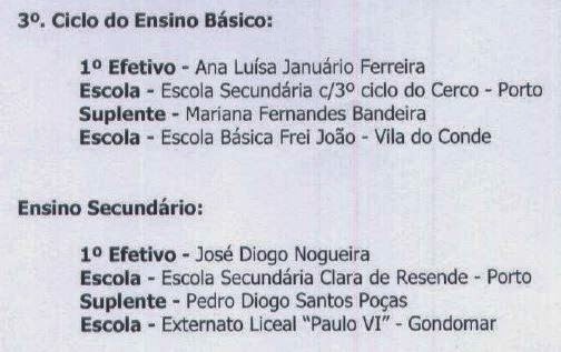 Os alunos que o júri elegeu para representar o nosso distrito na fase nacional, cuja data está por determinar, foram: