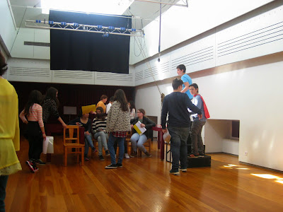 A experiência foi maravilhosa, por várias razões. Primeiro, a maior parte dos alunos nunca tinha entrado neste teatro fantástico, e foi possível visitar a magnífica sala de espetáculos. Seguidamente, para alcançar a sala onde se ia realizar o workshop, subimos a longa escadaria que permitiu observar os corredores e grandes lustres que davam um toque sofisticado ao foyer e cafetaria. Finalmente, no workshop dinamizado por dois atores, foram realizados vários jogos (de descontração, de concentração, de confiança), e, posteriormente, o texto a trabalhar...
